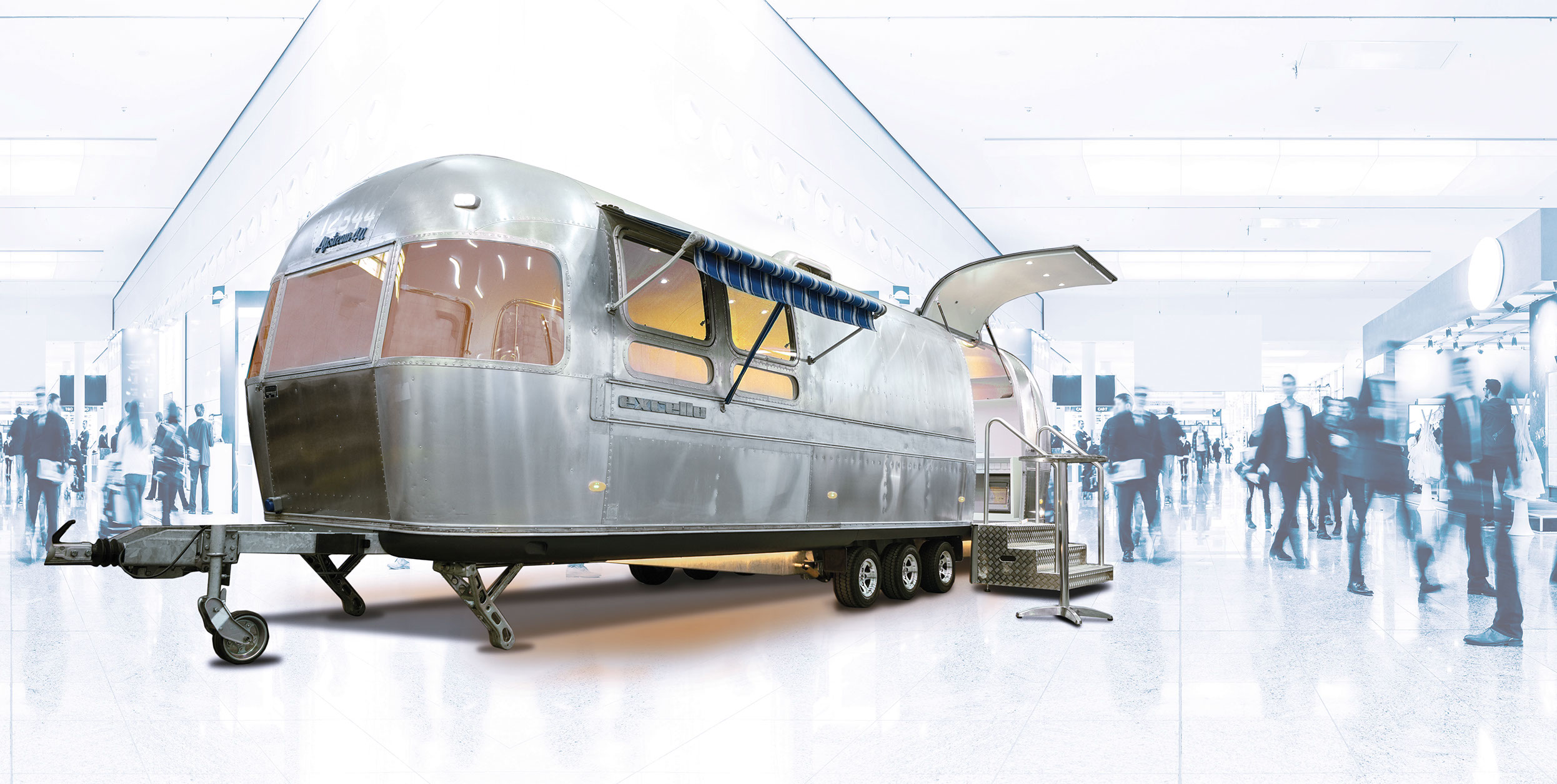 Vermietung und Planung individueller Fahrzeugbühnen, auf Basis altbekannter „Airstream“ Modellen.